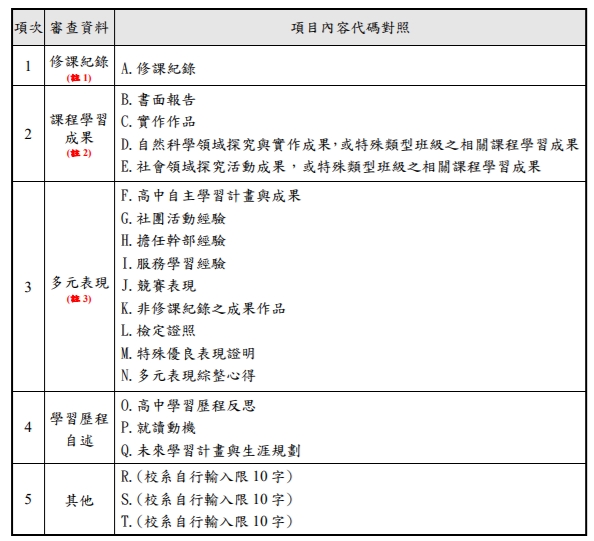 ※正式校系分則仍以紙本為準,原則上現在的內容應該是對的 ※本公告取消置頂後,仍可點上方「升學資訊」查看去年11/16的地方 ※自然組九成五都採計數A少用數B,社會組大多數B,看數A的主要是台大政大北大商科 ※七月分發會採用學測的15級分轉為60級分,且少數科系採計的科目會和個人申請不同(見最下面備註) 目前同學可查看想推的校系是採計那些科目,可下載查看以下的校系分則EXCEL檔: 大學申請分則:請點此 ,或到下方相關網址用甄委會網頁操作 各校限填系數可點此查閱(例如不能六個都填台大,或見簡章學校簡介頁說明) 四技申請分則:請點此 各校是否限填一系可點此查閱(或見簡章學校簡介頁) 大學繁星分則:請點此 本年度繁星總表可點此查閱 (本校繁星的做法可見總表第二頁的說明) 本校推薦作業原則可至教務處註冊組網頁右方查閱 若學校發的繁星初選表弄丟了,可看推薦作業原則的第三頁列印使用 至於繁星初選上網登錄的部份將於2月22日下午開放,建議同學等23日成績出來後再上網登 請於3/1早上8點前完成登錄,登錄兩次以上者會蓋掉前一次的登錄結果,所以要修改的同學重新登錄即可 (但前10%仍以撕榜為準,11~50%同學以紙本為準喔!) 大學分發分則:請點此 112/01/16學校宣講內容可以點選本連結查閱 該影片簡報檔已轉換成PDF檔可下載參考 若有校系同時將學科能力測驗「數學A」、「數學B」訂為其檢定科目,考生僅需通過「數學A」或「數學B」其中一科之檢定標準(五標)即可,且不作為倍率篩選及甄選總分之一。 (英聽不建議作為多元表現的資料,畢竟效力不及英檢與多益) (倍率篩選通常大倍率的科目門檻會較鬆,但倍率小的科目分數就會要求比較嚴格,或許可以用這個查看自身優劣勢科目來看推那六個校系比較穩當) 個申分則中備審資料的要求內容為代碼化,可以比對下圖知道學校要什麼,其中 1.N以後都為三下再自填的內容,而F到M皆為多元表現,雖然分得很細但不會綁定學習歷程的多元分類,例如同學能把多元的競賽表現丟到甄委會的特殊優良表現內 2.自傳為非必要,看各大學是否有列在R以後的地方 3.如果過了一階,部份校系需到該校網站指定處填基本資料表並列印成PDF檔後傳到R以後的地方 ![]() 註一:有幾個7月分發與個人申請要求科目不一致的校系如下: 國立臺灣大學 農業經濟學系 個申學測不用自然但分發要均標 國立臺灣大學 生物機電工程學系 個申學測不用國文但分發要均標 中原大學 國際經營與貿易學系 個申學測不用數b但分發要後標 東吳大學 心理學系 個申學測不用自然但分發要後標 註二:坊間所謂大學分科可低分高就僅限中後段的校系,目標在台清交政成醫的頂尖校系者仍要憑實力上無所謂分科有優勢;若學測國英沒考好的同學多考量個申時的優勢,畢竟分科不會重考國英以及社會組數學 |